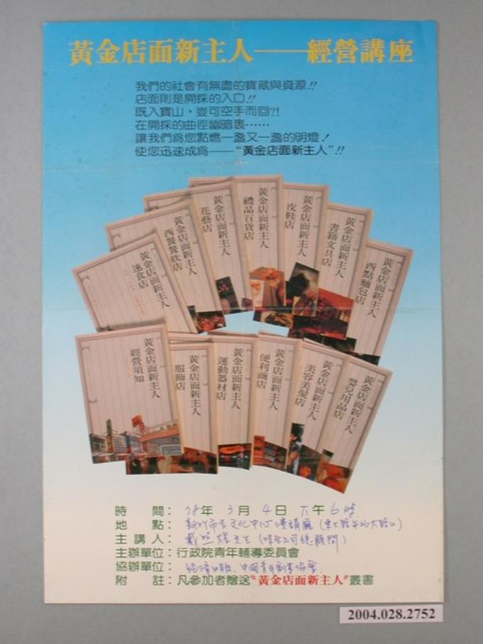 行政院青年輔導委員會印製黃金店面新主人-經營講座海報