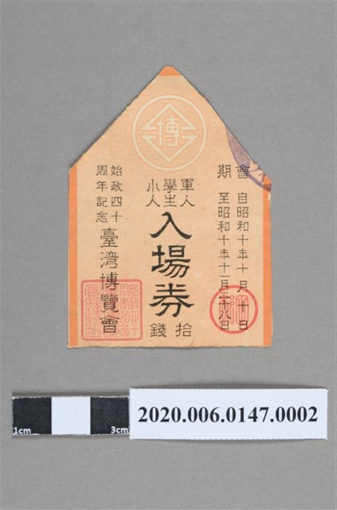 始政40周年臺灣博覽會軍人/學生/小人入場券