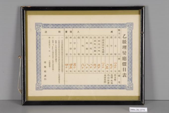 乙級理髮廳價目表