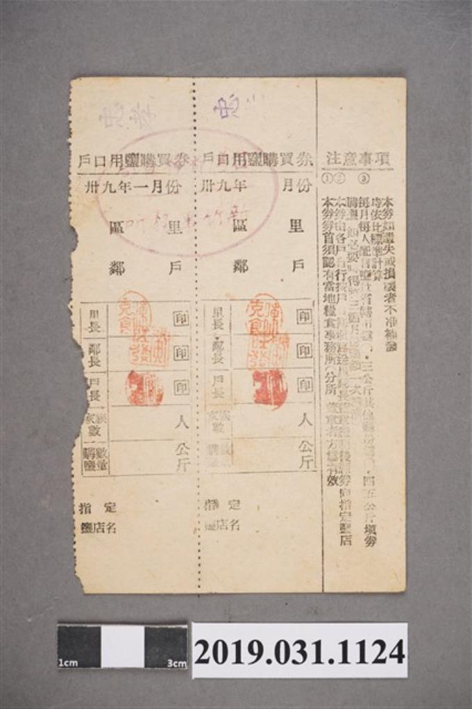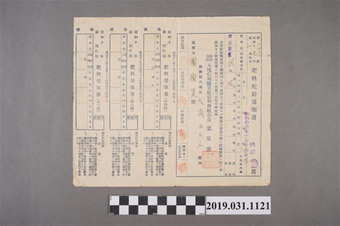 新竹柴村光明(蔡燦煌)家庭用木炭購入票