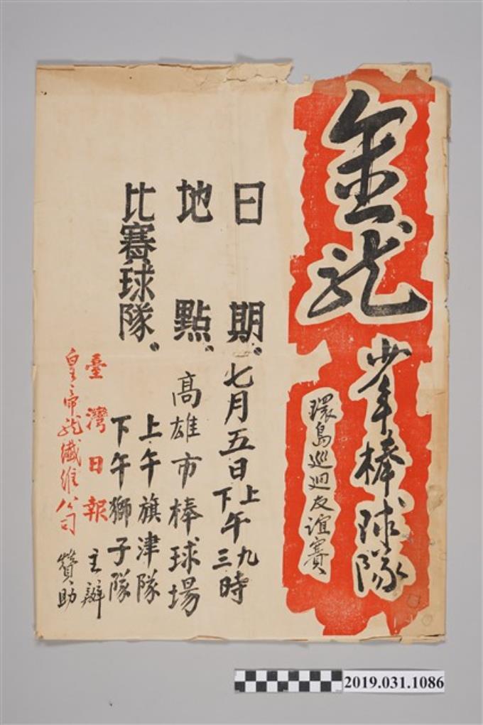 臺灣日報主辦金龍少年棒球隊環島巡迴友誼賽海報