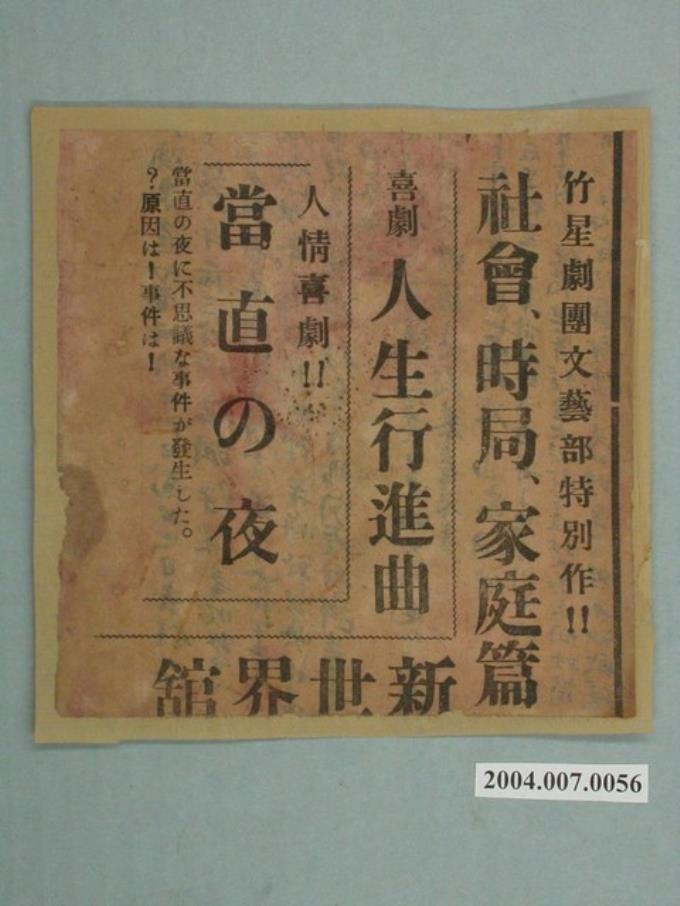 竹星劇團文藝部特別作《人生行進曲》、 《當直の夜》新劇傳單