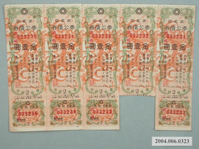 臺灣產業金庫發行奉公債券033231至033235號