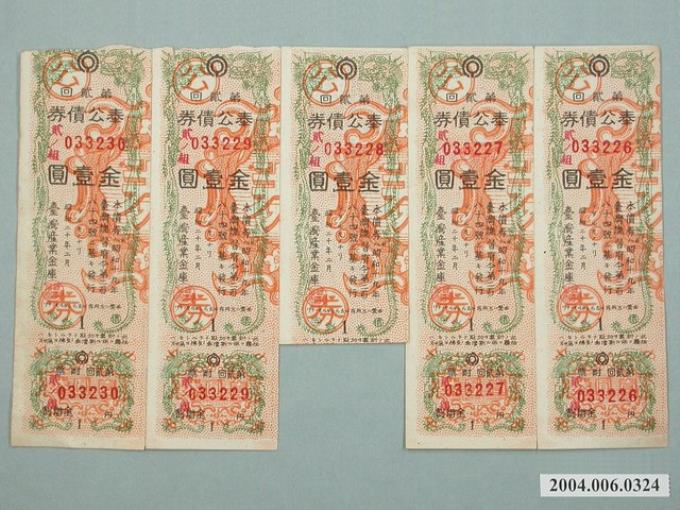 臺灣產業金庫發行奉公債券033226至033230號