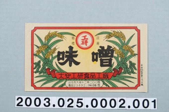 大安工研食品工廠工研味噌商標紙
