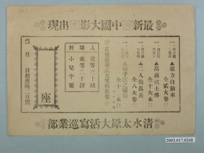 清水太原大活寫巡業部電影廣告