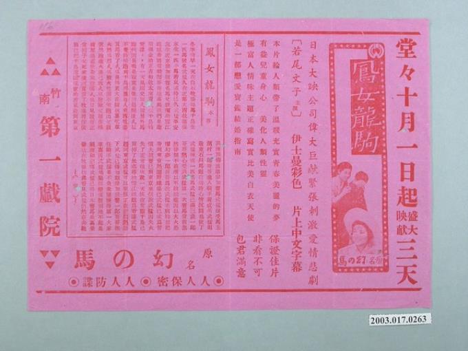 第一戲院發行《鳳女龍駒》電影本事