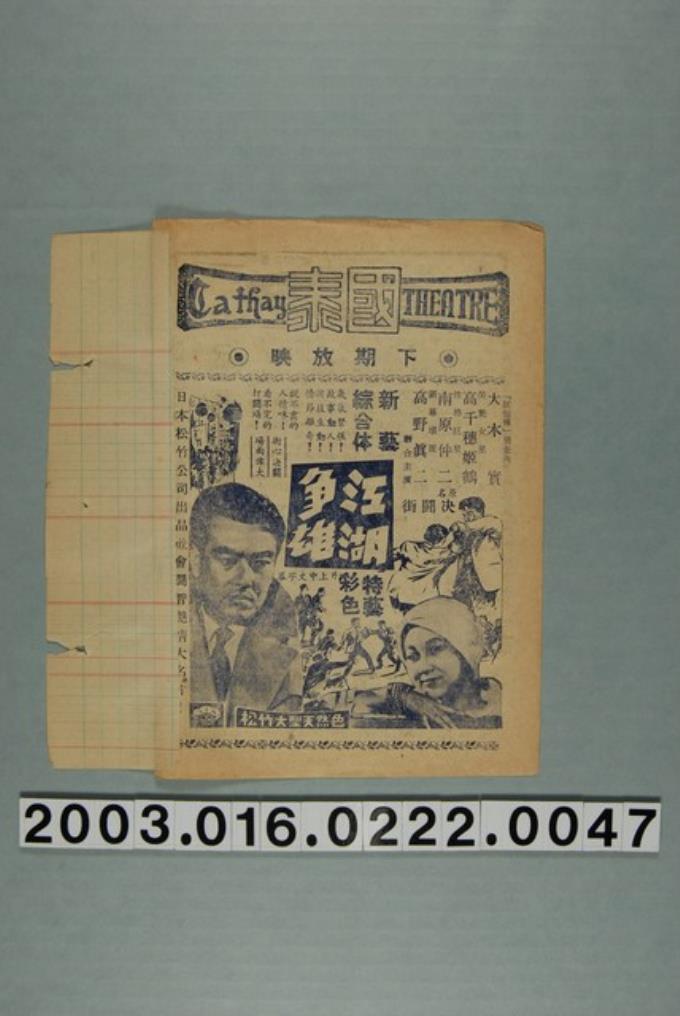 國泰戲院發行《江湖爭雄》電影本事
