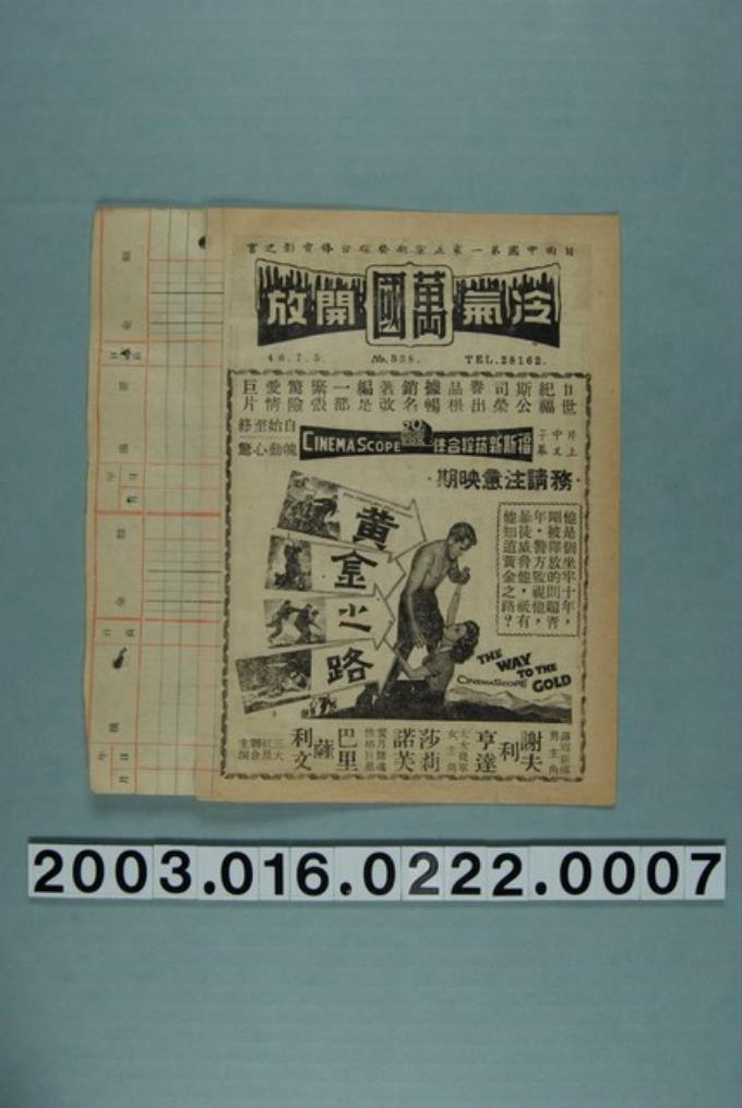 萬國戲院發行《黃金之路》電影本事
