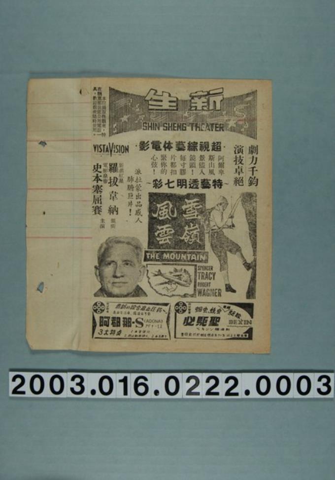 新生戲院發行《雪嶺風雲》電影本事