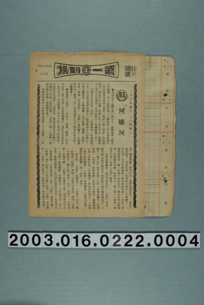 第一劇場發行《河孃淚》電影本事
