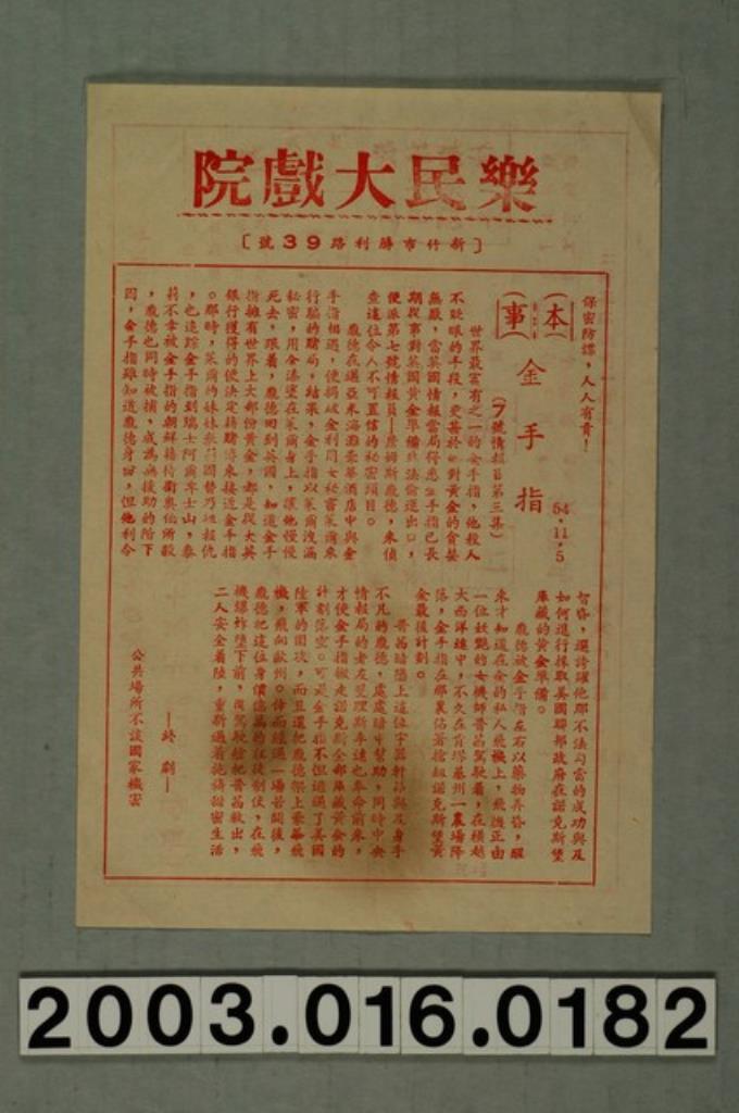 樂民大戲院發行《金手指》電影本事
