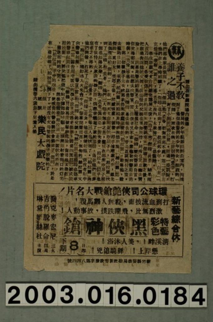 樂民大戲院發行《養子不教誰之過》電影本事