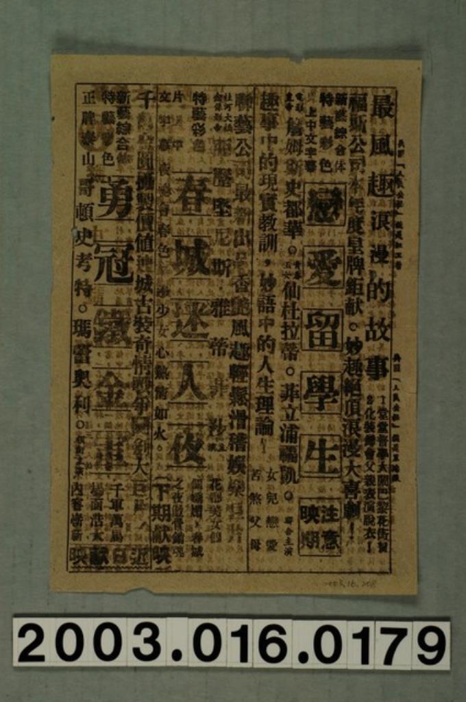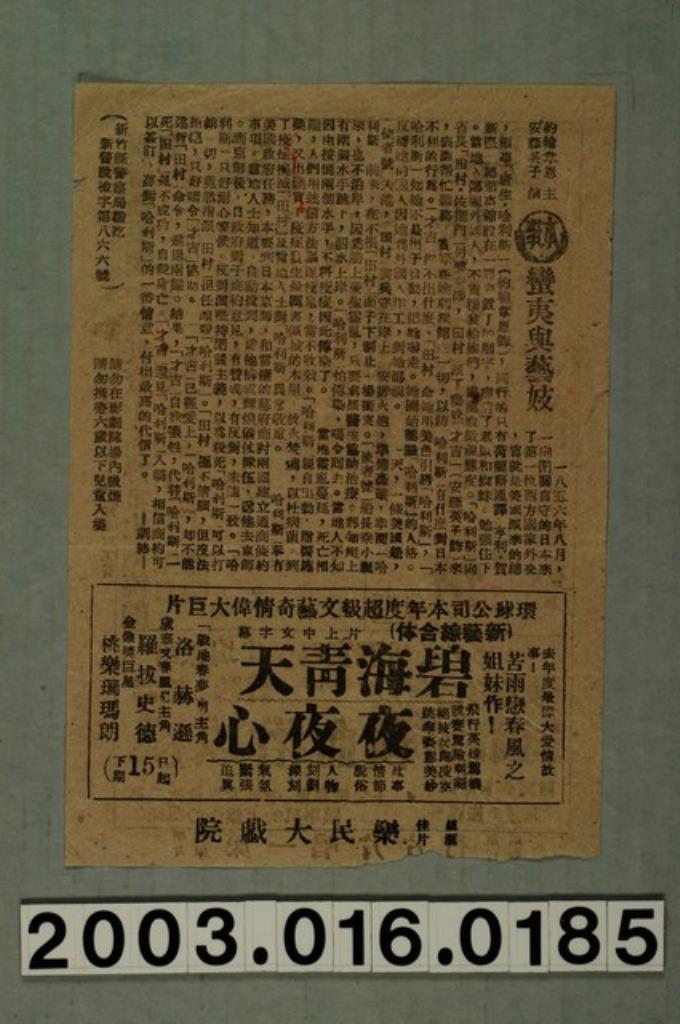 樂民大戲院發行《蠻夷與藝妓》電影本事