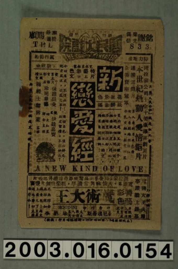 國民大戲院發行《桃花運》電影本事