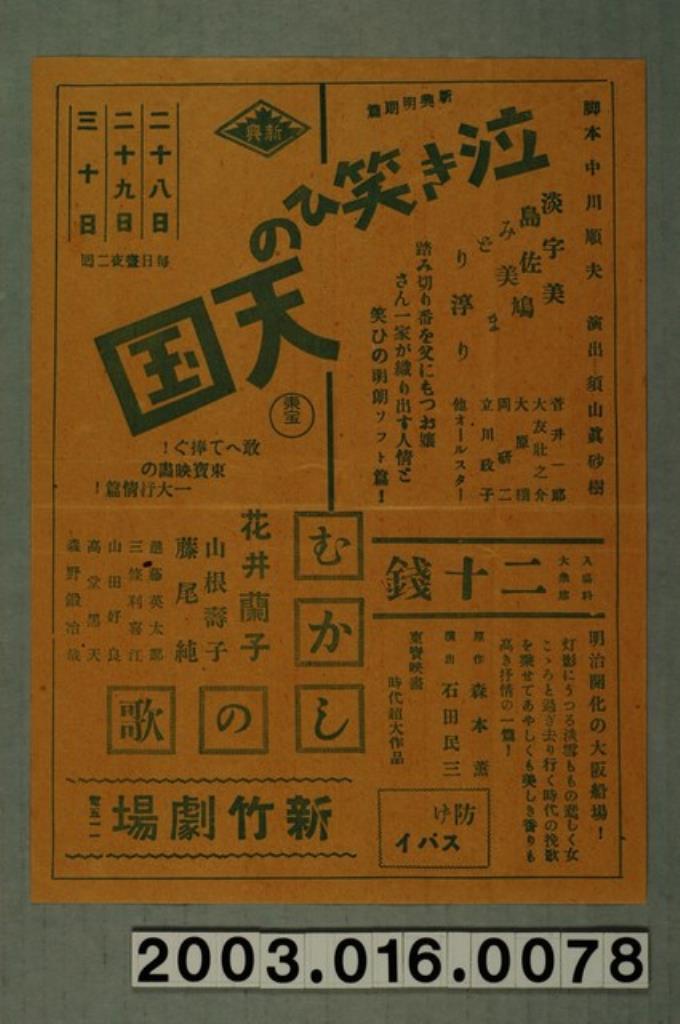 新竹劇場發行《哭笑國度》與《懷念的歌謠》電影本事