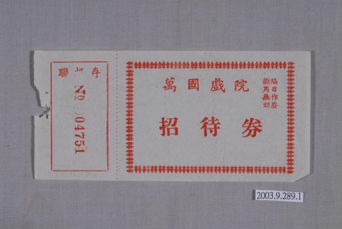 萬國戲院招待券編號04751