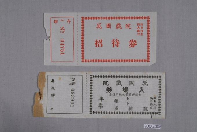 萬國戲院入場券2張