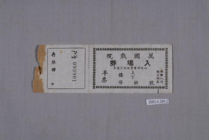 萬國戲院入場券編號093901
