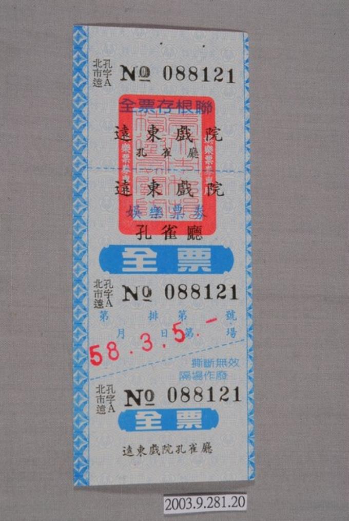 遠東戲院票券編號088121