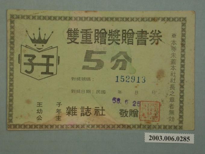 王子等雜誌社雙重贈獎贈書券