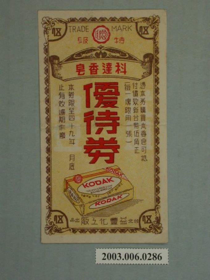 臺北益豐化工廠出品科達香皂優待券