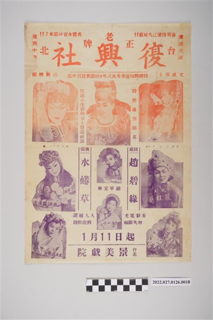 臺北正老牌復興社歌劇團於景美戲院演出宣傳單