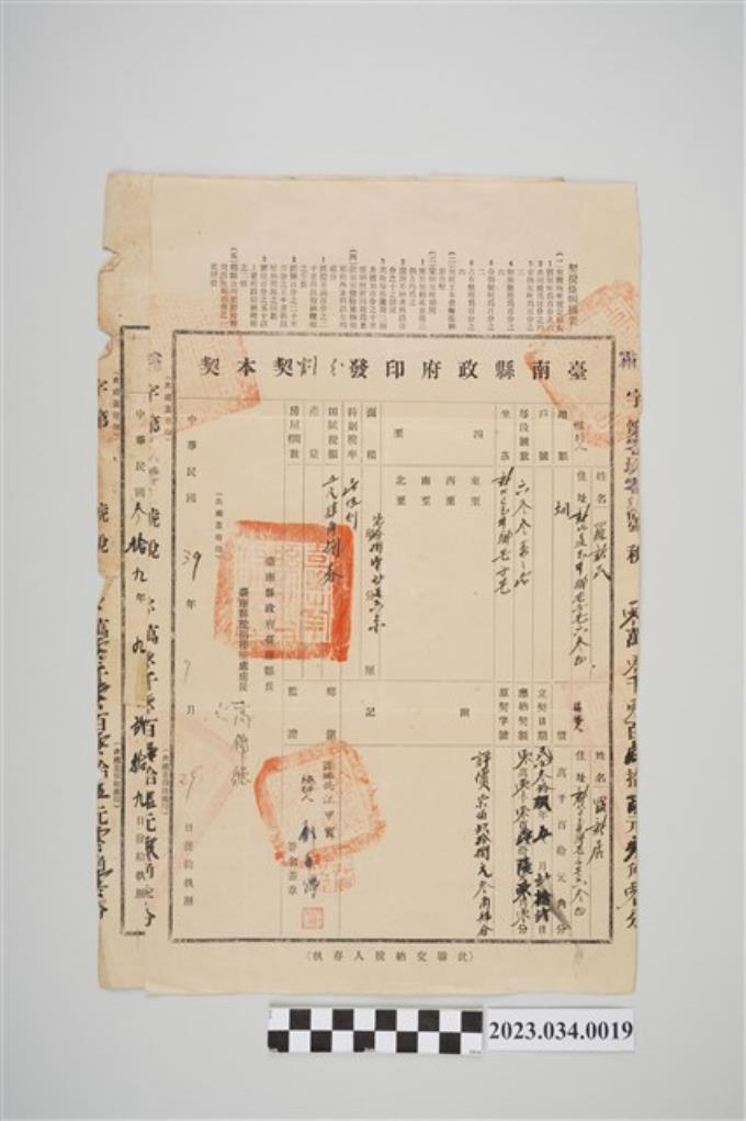 民國39年羅新民繳納臺南縣政府芒仔芒土地分割契稅