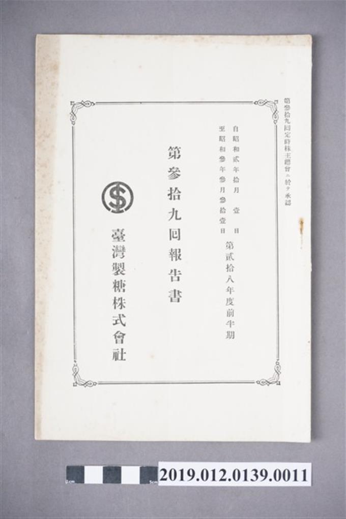 臺灣製糖株式會社第39回報告書