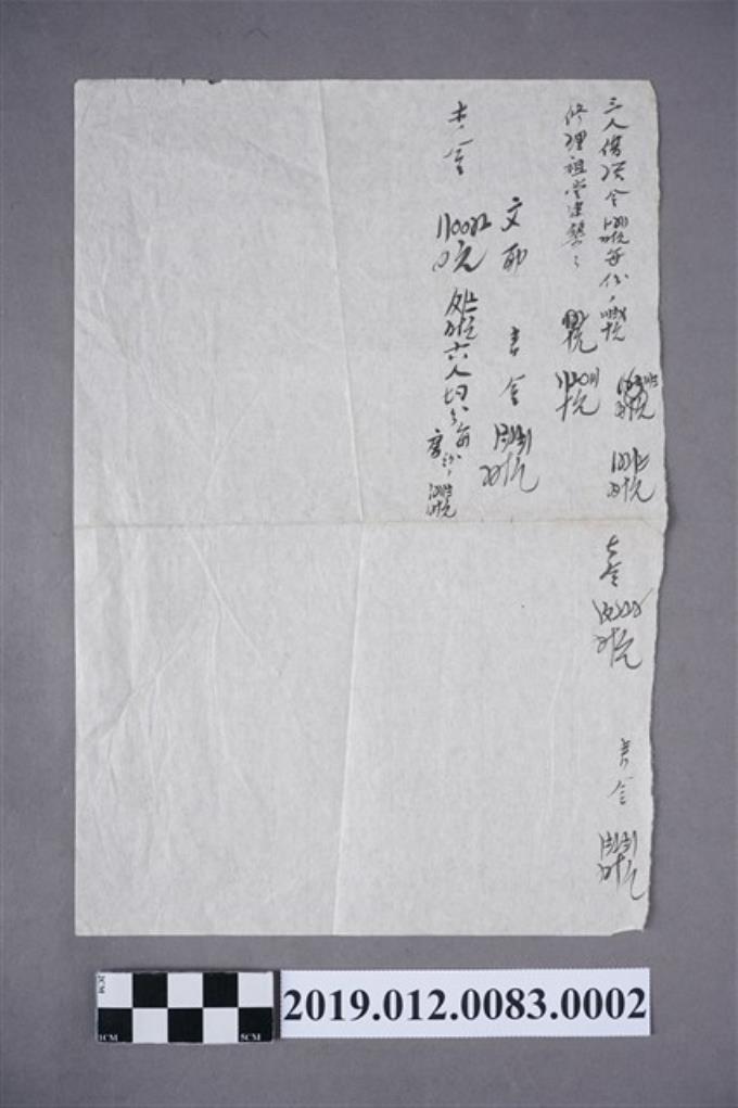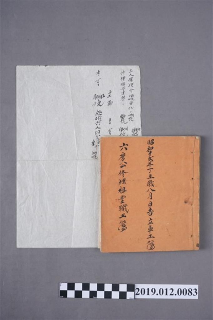 昭和12年六房公修理祖堂職工簿內頁筆記