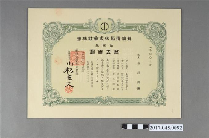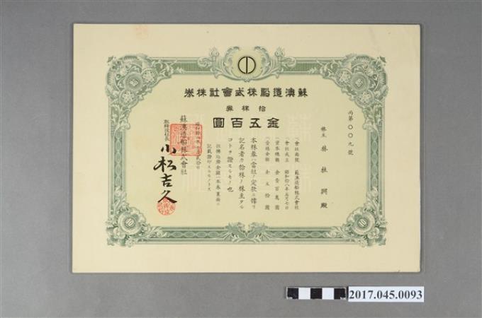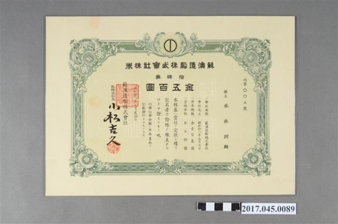 花蓮港倉庫信用利用組合出資證券乙第七五號