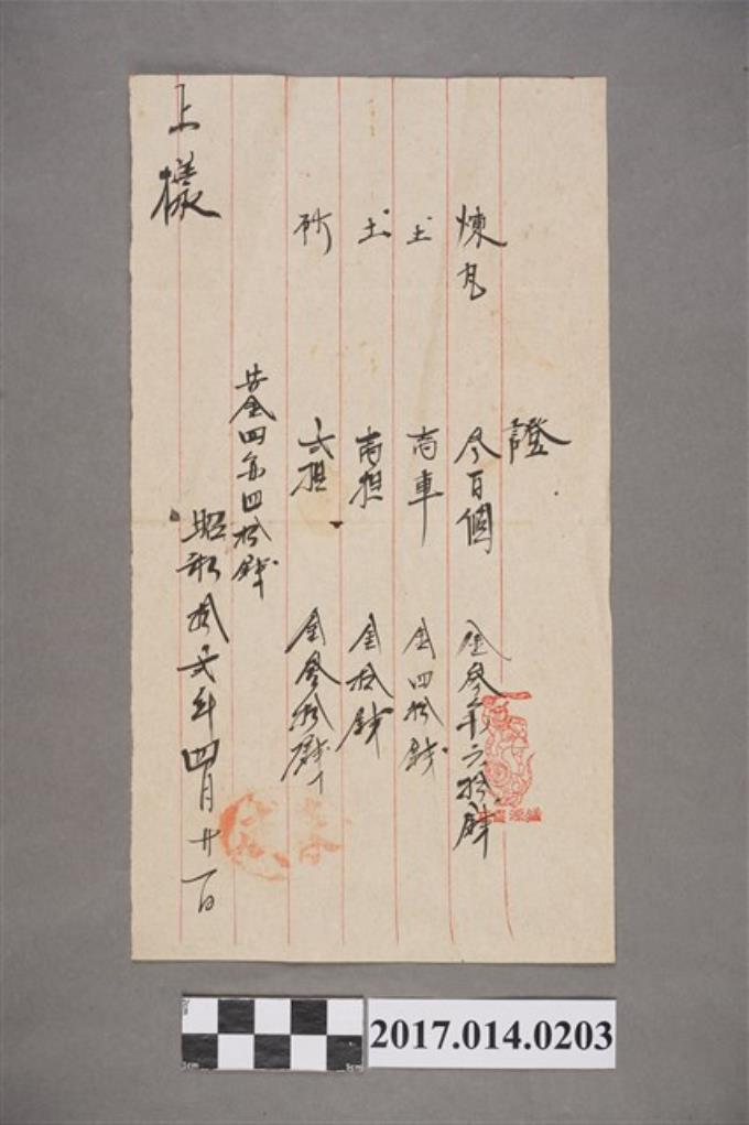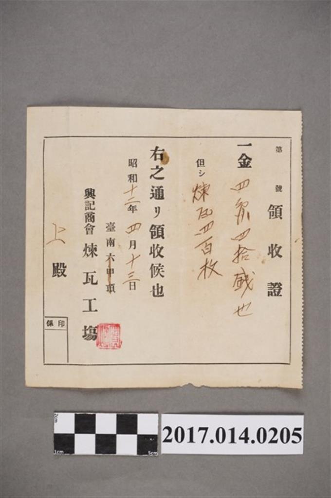 昭和12年4月13日興記商會煉瓦工廠領收證