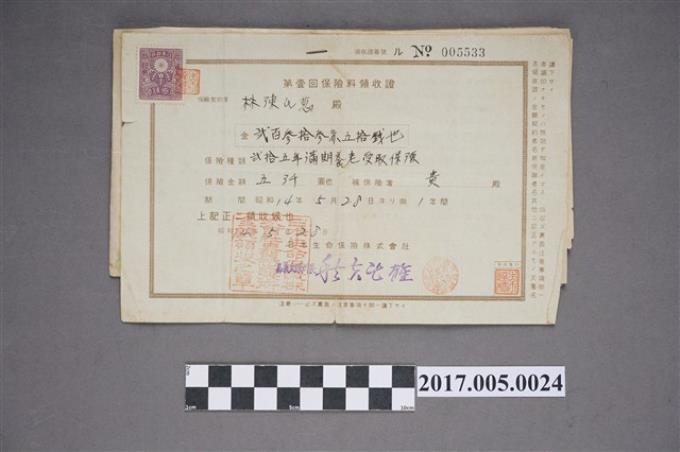 林坤佐日本生命保險保險料領收證