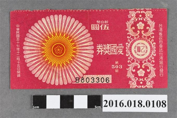 臺灣省政府委託台灣銀行發行愛國獎券503期