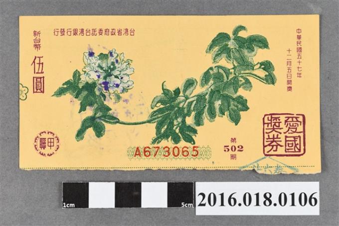 臺灣省政府委託台灣銀行發行愛國獎券502期