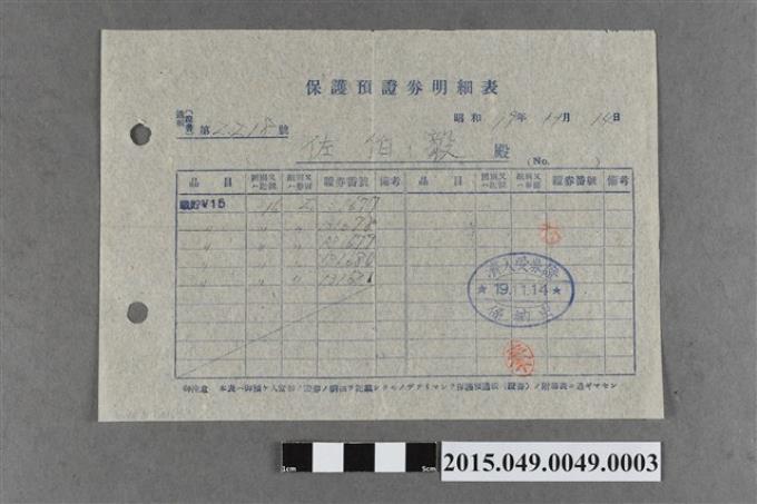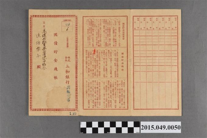 佐伯雪子株式會社三和銀行高雄支店國債儲金簿