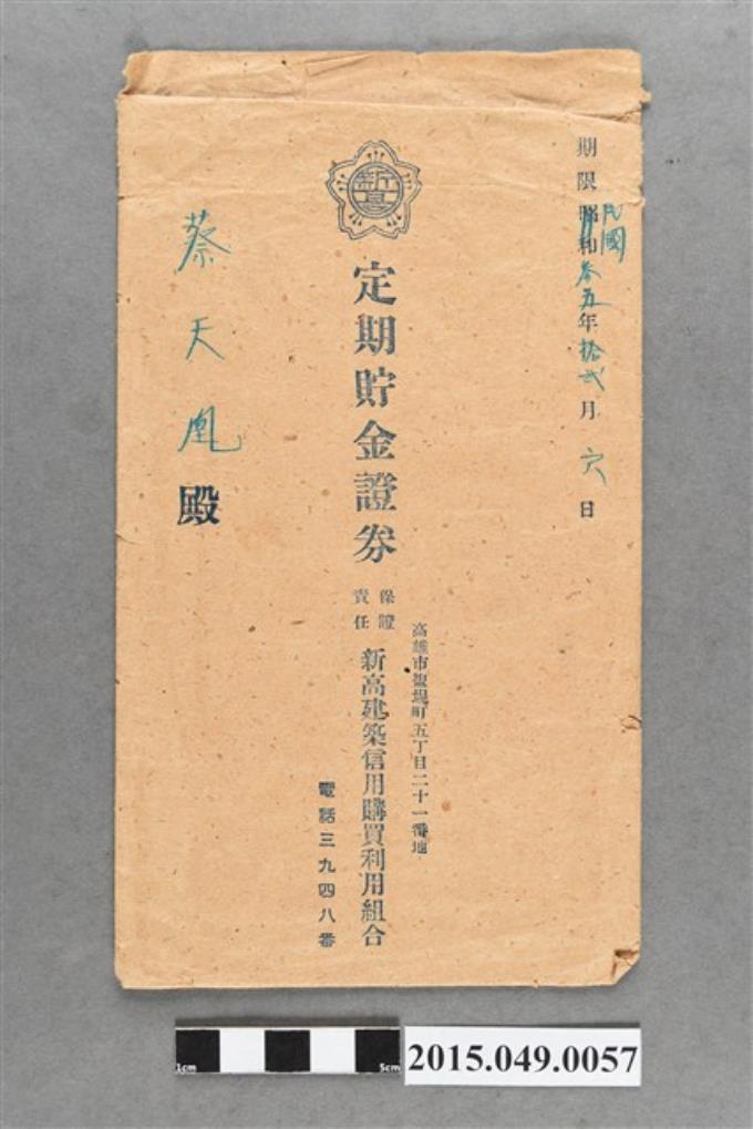 蔡天凰保證責任新高建築信用購買利用組合定期儲金證券封套
