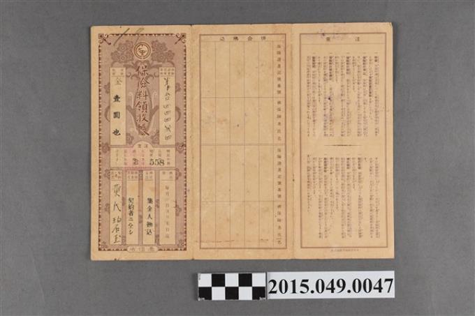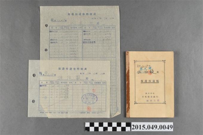 保險院簡易保險局發給黃氏碧玉保險費領收簿