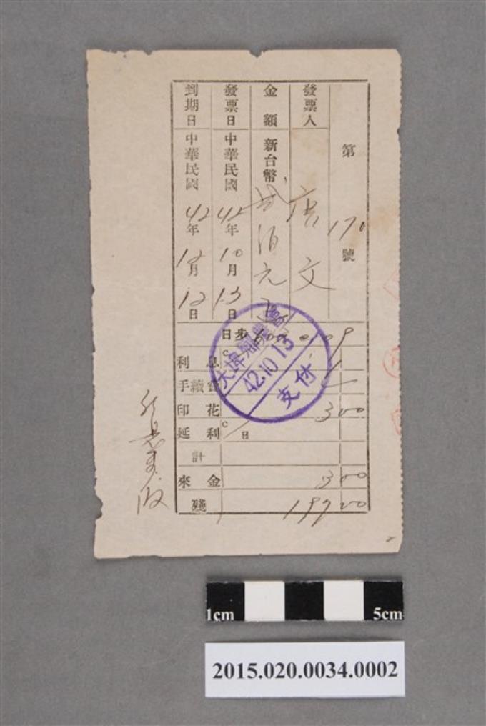 唐文具名開立的支票存根