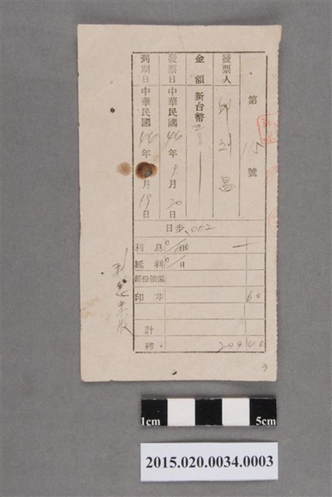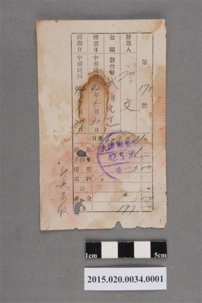 大埤鄉農會給唐大松抵押放款借據