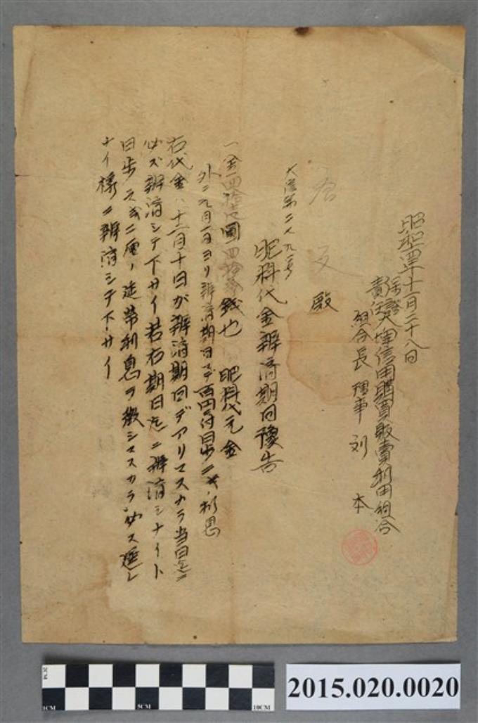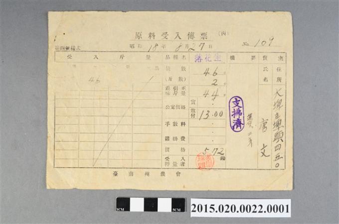 臺南州農業會等給唐文各式單據