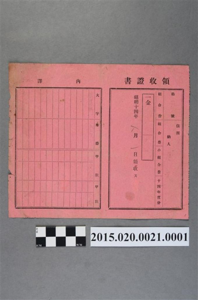 唐文納繳水利組合組合費領收證書