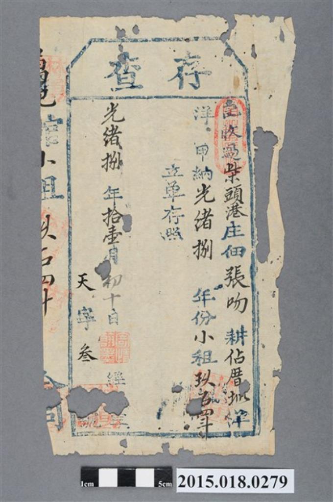 光緒5年8月鳳山縣給蘇儀納戶執照