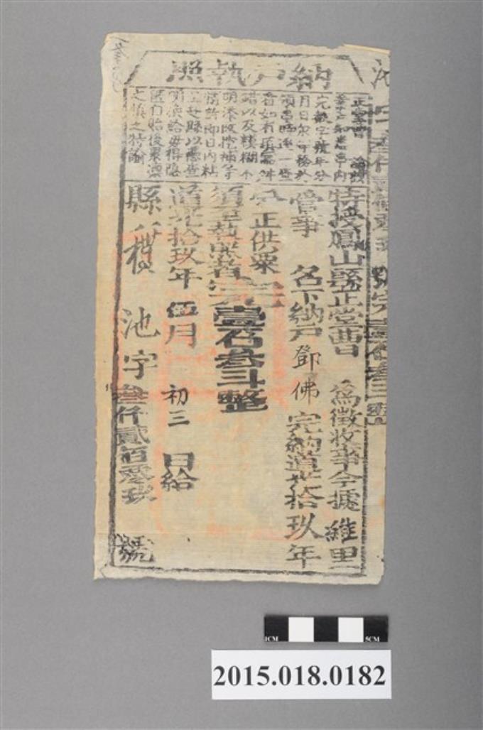 道光19年5月維新里鳳山縣給林顏納戶執照