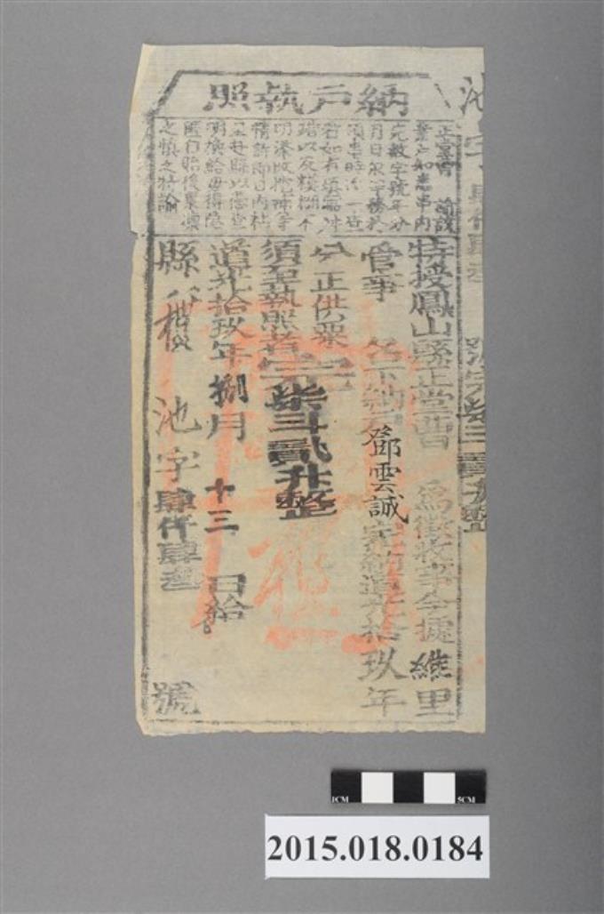 道光19年5月維新里鳳山縣給郭閏納戶執照