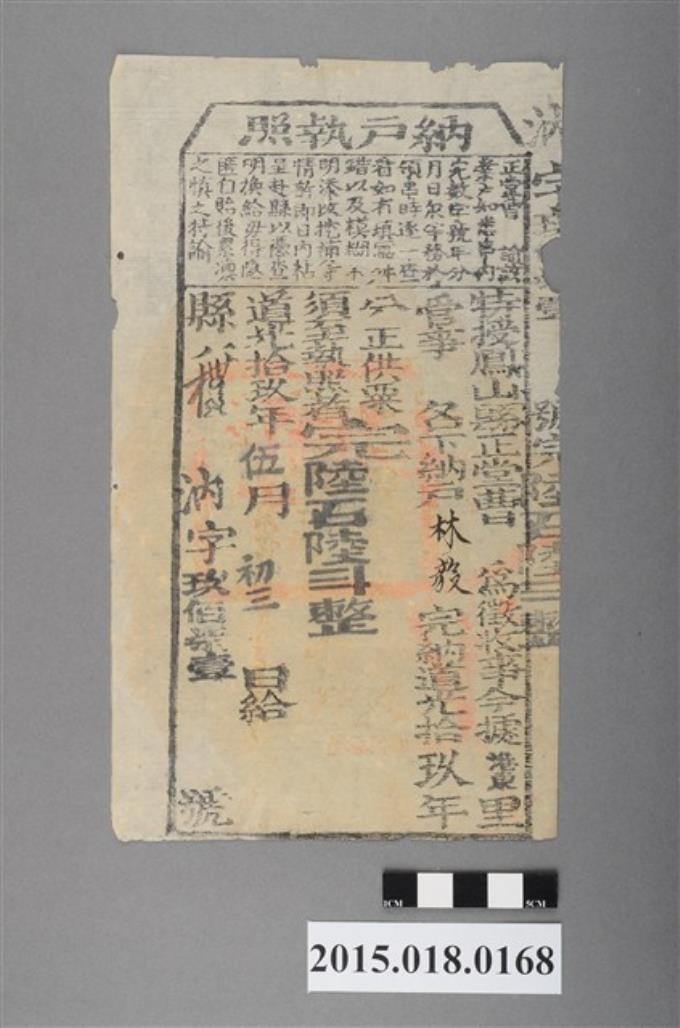 道光19年5月港東里鳳山縣給林任納戶執照