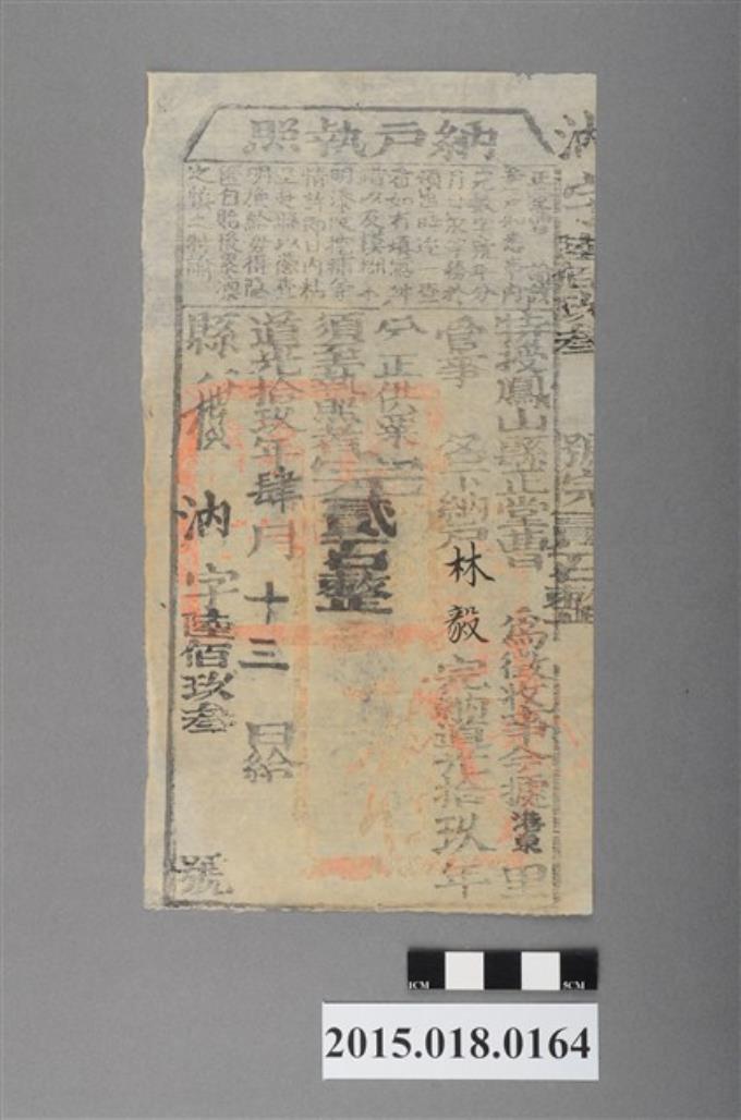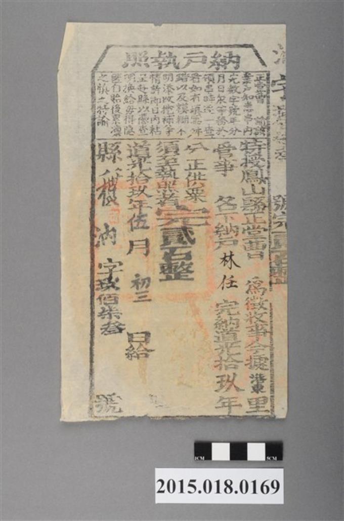 道光19年5月港東里鳳山縣給林毅納戶執照