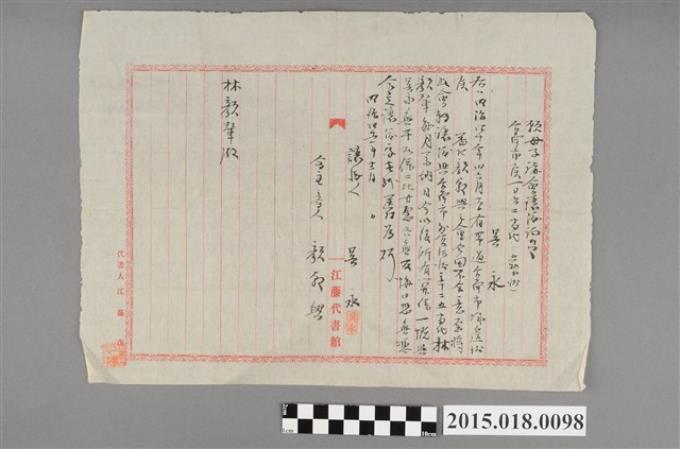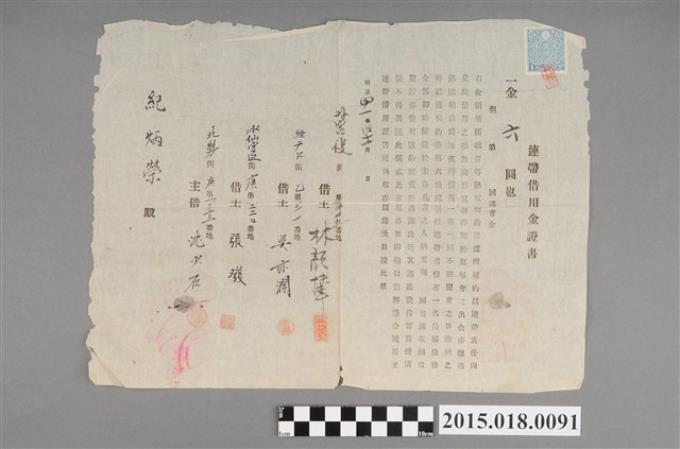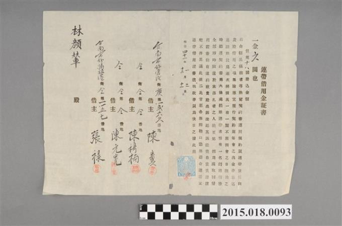 明治41年11月林顏輦等人給陳糞之連帶借用金證書
