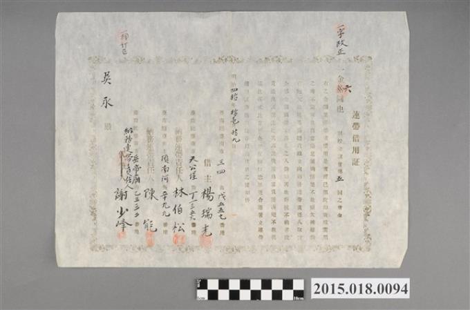明治40年11月楊瑞光等人給吳永之連帶借用證