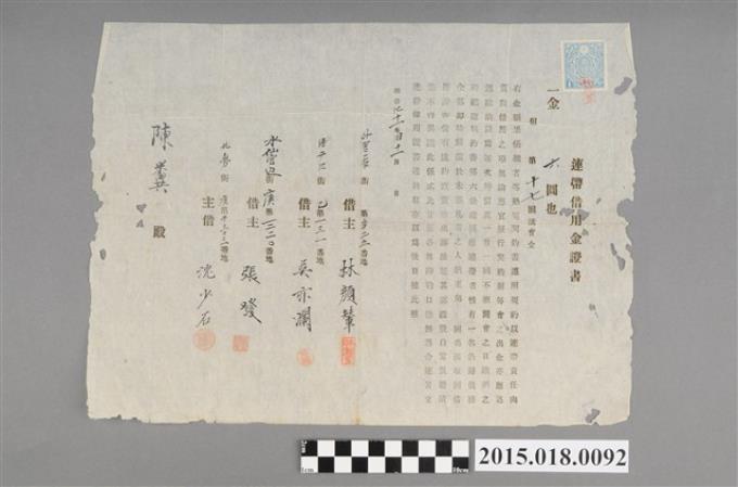 明治41年11月陳糞等人給林顏輦之連帶借用金證書